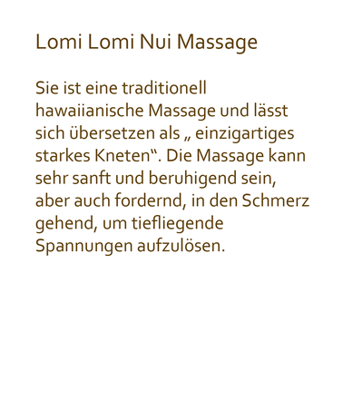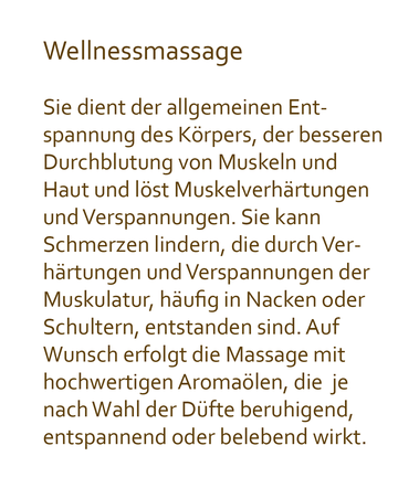 Alle angebotenen Massagen sind keine erotischen Massagen. Sie dienen der Gesundheitsvorsorge und sind keine Heilbehandlungen.